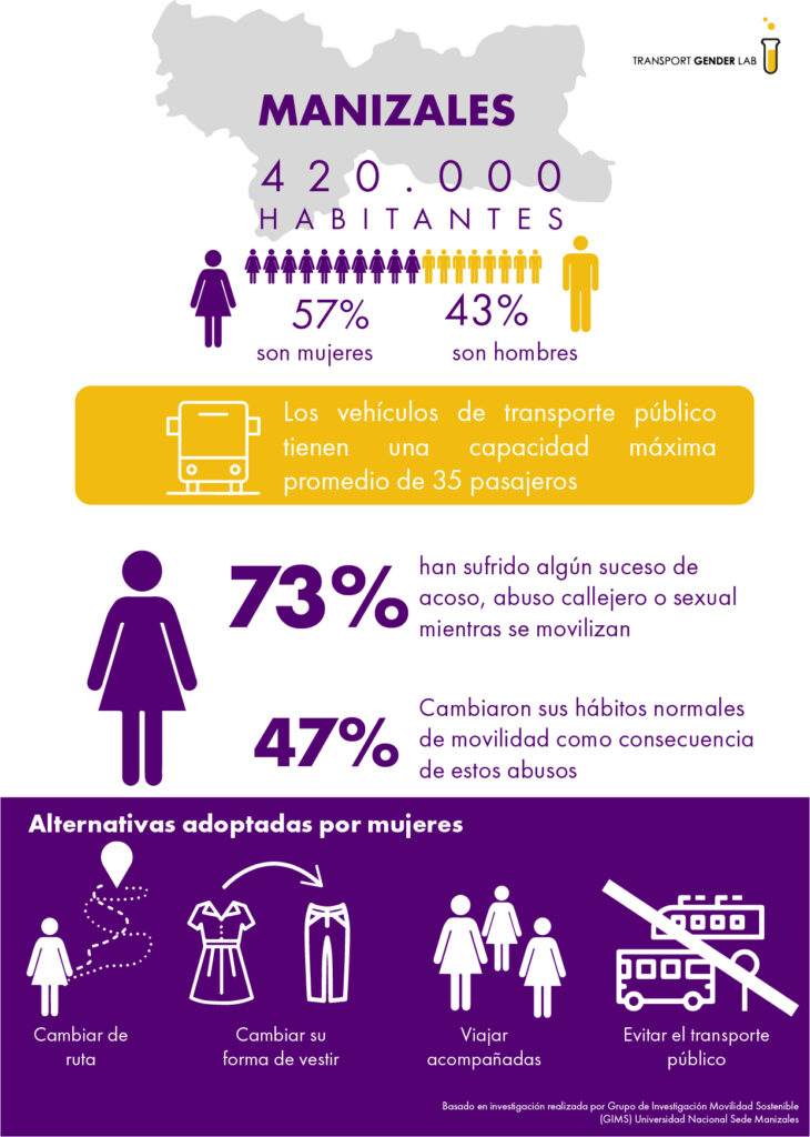 Todas sabemos que al salir, aunque sea a un lugar cercano, es muy probable que recibamos piropos y miradas morbosas. Reconocemos que las personas alrededor y los victimarios no conciben ésto como un suceso que puede afectarnos, sino que al contrario, piensen que nos vamos a sentir halagadas. La normalización de la violencia basada en género es un hecho con el que lidiamos las mujeres en el espacio público. Por esa razón, y porque no estaba de acuerdo con este tipo de conductas ingresé a trabajar a la Universidad Nacional de Colombia sede Manizales donde conocí el Grupo de Investigación en Movilidad Sostenible (GIMS). Allí, junto con otros investigadores interesados en entender las dinámicas de movilidad y las situaciones que afectan a las personas mientras se movilizan, iniciamos una investigación profunda sobre violencia basada en género en Manizales.