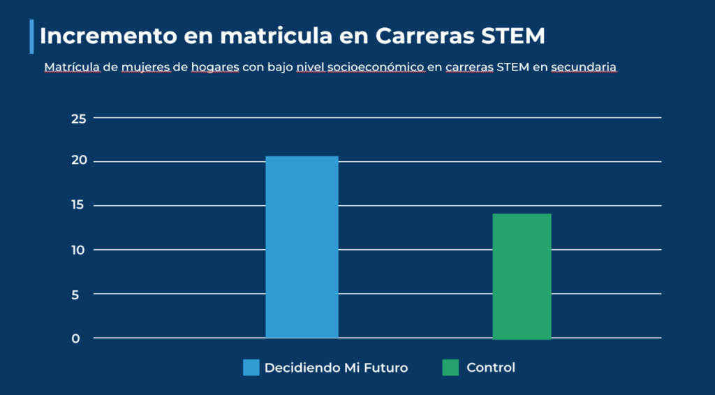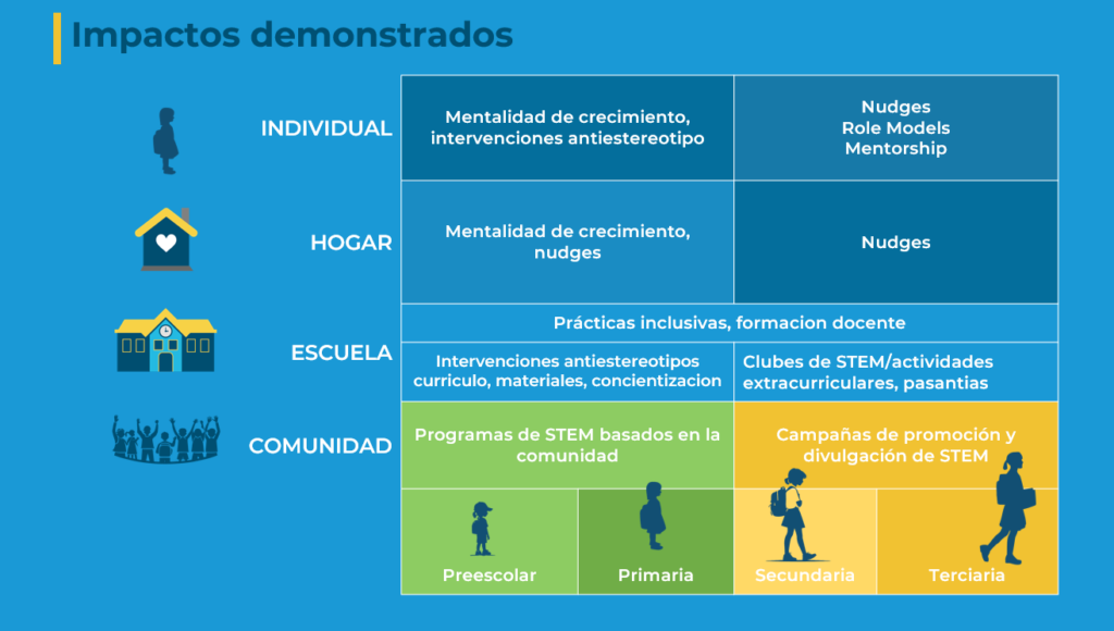A nivel global, existen múltiples modelos efectivos para cambiar estereotipos de género y fomentar la participación de las niñas en STEM. Un ejemplo de ello es el caso de Costa Rica, donde el Ministerio de Educación, en colaboración con el BID y la ONG Innovation for Poverty Action (IPA), lanzó la campaña "Decidiendo mi Futuro", destinada a motivar a las niñas de noveno grado a elegir cursos de STEM en la escuela secundaria.