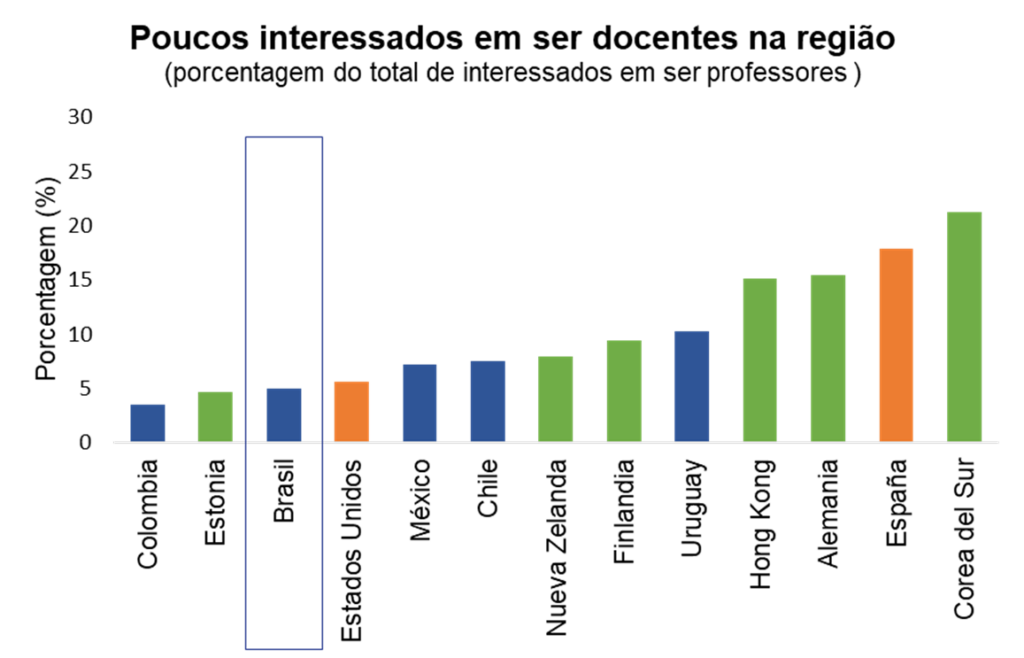 Para atrair melhores alunos, países como Chile, Equador, Peru e Colômbia implantaram políticas de incentivo, com bolsas, créditos estudantis e campanhas de valorização profissional. Programas de indução profissional que dão apoio aos novos docentes, melhorias das condições de trabalho e de salário, incentivos para lecionar em escolas mais vulneráveis são fatores centrais em uma proposta de carreira docente mais moderna e, no Brasil, poucos estados e municípios contam com propostas mais inovadoras.