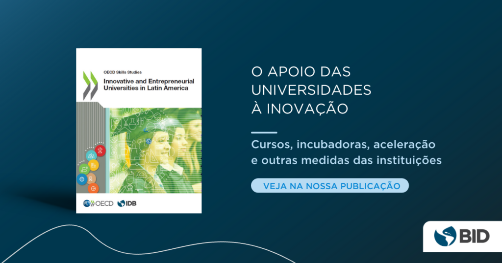 Um ator que tem contribuído de maneira significativa para este dinamismo são as instituições de ensino superior, que têm assumido uma importância crescente para impulsionar a inovação na região. Por isso, vale saber quais medidas as universidades têm colocado em prática para apoiar o empreendedorismo. Essa questão é abordada na publicação “Universidades Inovadoras e Empreendedoras na América Latina” (em inglês), elaborada conjuntamente pelo Banco Interamericano de Desenvolvimento (BID), a Organização para a Cooperação e o Desenvolvimento Econômico (OCDE) e o Banco Santander. O estudo explora questões de educação para o empreendedorismo e atividades de transferência de conhecimento em onze universidades da Argentina, Brasil, Chile, Colômbia, México e Uruguai. No caso do Brasil, as instituições participantes foram a Universidade de São Paulo (USP) e a Universidade Federal de São Carlos (UFSCar).