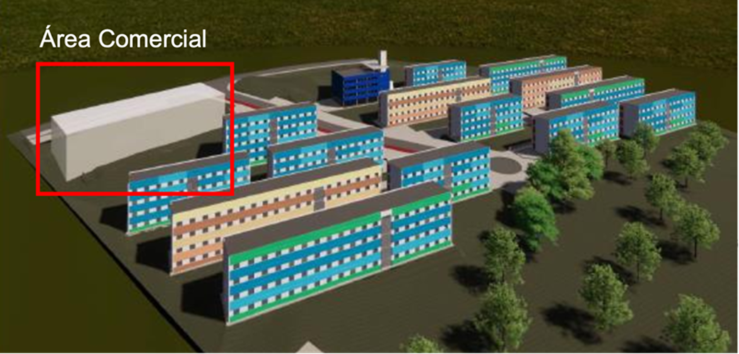O projeto também inclui áreas comerciais nos espaços térreos dos edifícios e um edifício exclusivamente comercial às margens da Avenida Beira Rio, que poderão ser alugados. Essa iniciativa busca utilizar o valor do aluguel para reduzir os custos condominiais, além de promover a oferta de serviços mais próxima dos moradores e moradoras que poderão, também, trabalhar perto de suas casas.
