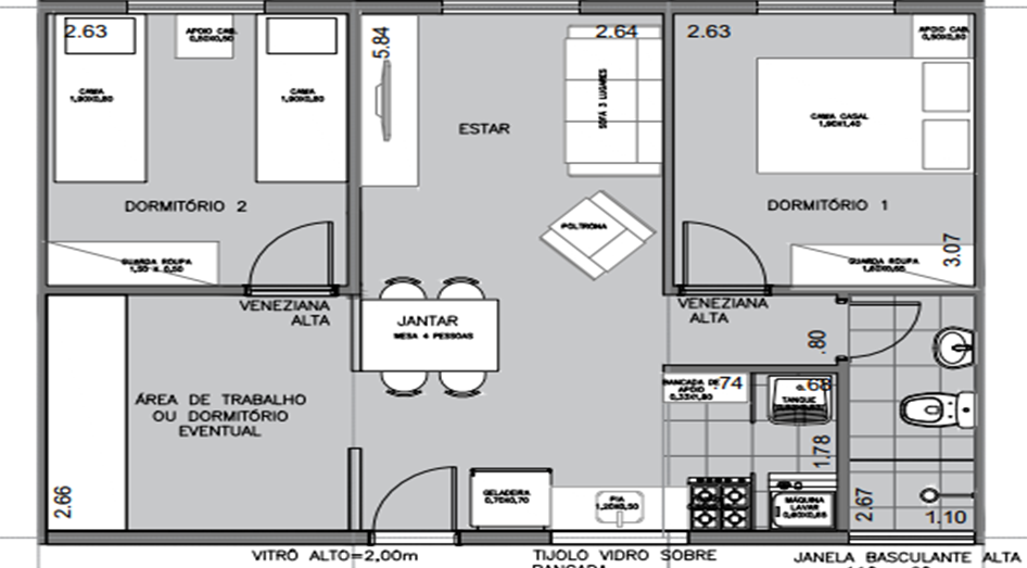 Planta de dois quartos com cômodo neutro (fonte: Prefeitura de João Pessoa)3- Uso misto