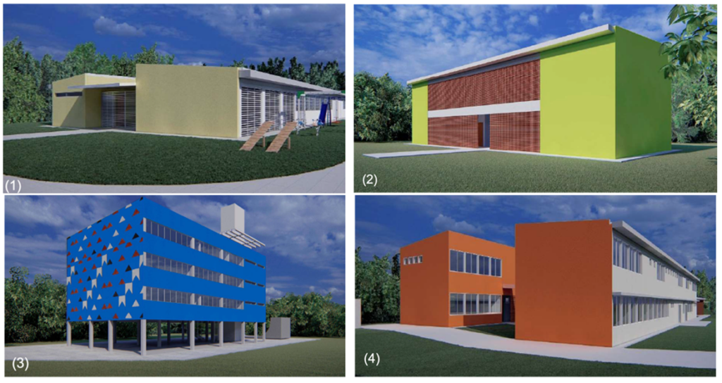 Imagens do projeto: (1) creche, (2) cooperativa dos catadores, ONG CEIFA, (3) centro de referência da juventude e (4) equipamentos sociais (CRAS, CRC, cozinha comunitária) (fonte: Prefeitura de João Pessoa) 4- Sustentabilidade