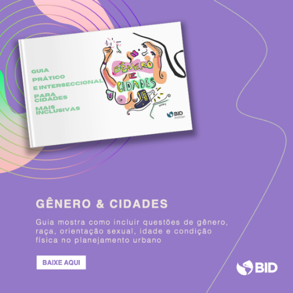 Conheça materiais produzidos pelo BID que tratam sobre a pauta de inclusão de gênero e diversidade: Guia prático e interseccional para cidades mais inclusivas e Podcast Gênero e Cidades.
