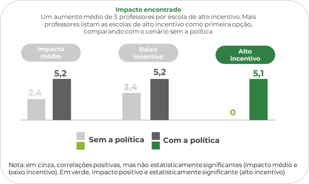 O programa também melhorou os resultados dos alunos. As escolas que ofereceram altos incentivos viram as pontuações nos testes aumentarem entre 0,3 e 0,6 desvios-padrão tanto em matemática quanto em língua portuguesa. Isso sugere que um corpo docente estável e experiente contribui diretamente para uma melhor aprendizagem dos alunos.