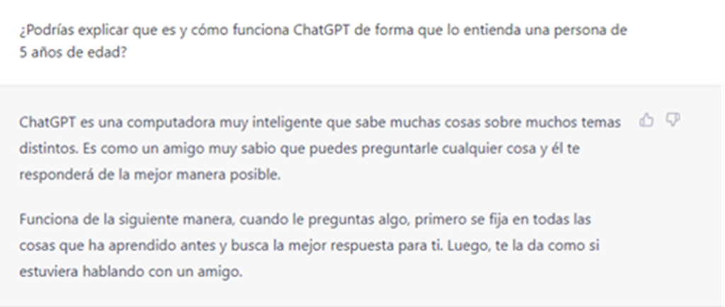 Assim, um professor de filosofia que queira abordar questões relacionadas com o gênero pode solicitar ao ChatGPT um documento com as principais normas internacionais sobre a matéria, ou os avanços legislativos no seu país ou, por que não, uma seleção, com base em determinados critérios, de notícias jornalísticas ou estatísticas relacionadas com a violação da igualdade de direitos nesta matéria. Tudo isso sem ter que dominar a estrutura e as complexidades dos buscadores convencionais. Uma simples pergunta, como seria feita a um colega, já é suficiente.