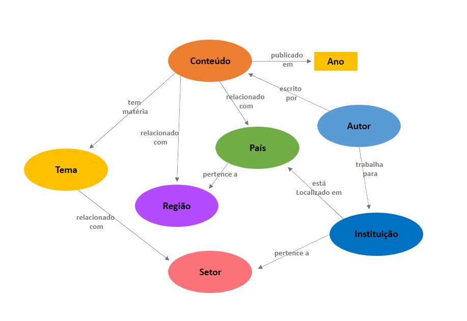 Embora complexa, uma taxonomia não é suficiente para nossos algoritmos entenderem a linguagem natural humana e terem a capacidade de recomendar conteúdo relevante para nossos públicos. Criamos, então, uma ontologia, que é um modelo sofisticado que contém um conjunto de taxonomias, chamadas de classes, que representam famílias de conceitos, e que estão relacionadas entre si.