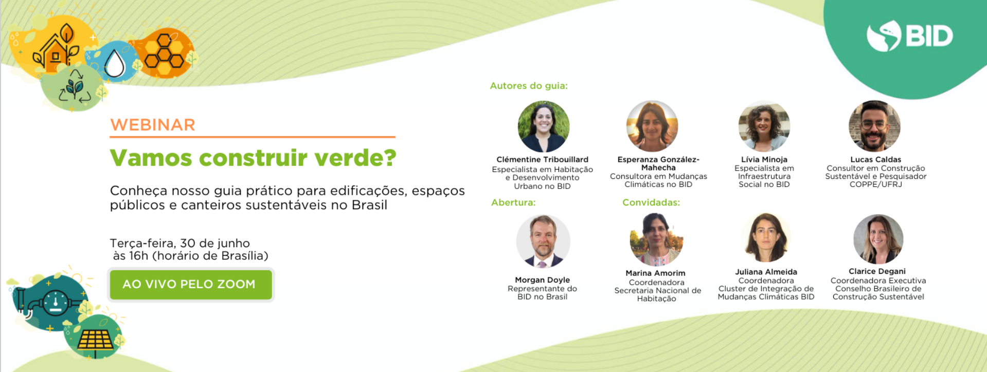 O Banco Interamericano de Desenvolvimento vai lançar o guia “Vamos Construir Verde? Guia prático para edificações, espaços públicos e canteiros sustentáveis no Brasil” na próxima terça-feira, 30/06, às 16h. Para isso, reuniu um time de especialistas do Banco e também de parceiros do governo federal, do setor privado e da academia para debater o tema virtualmente e apresentar as principais recomendações que constam na publicação.
