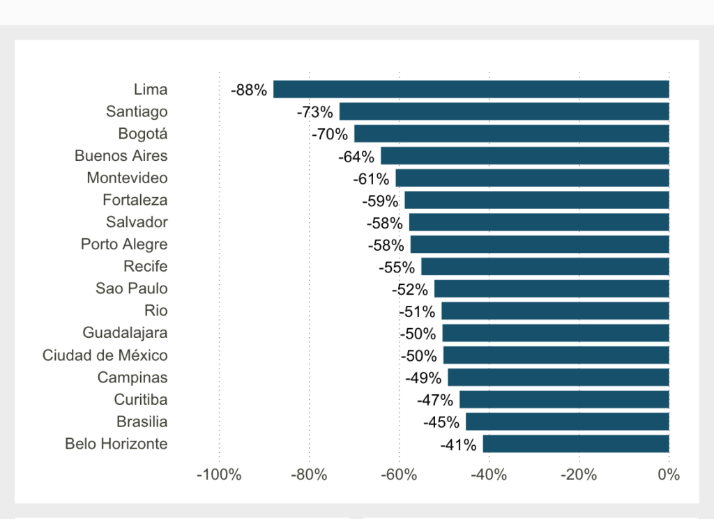 Figura 3. Variação do uso do transporte público em cidades selecionadas da América Latina com base no Moovit