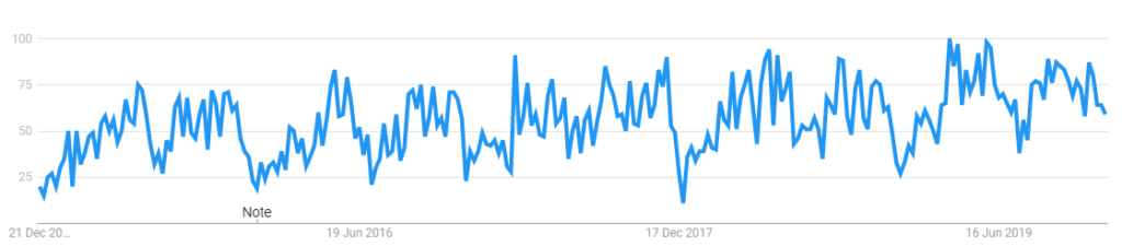 Buscas pelo termo “gestão de riscos” nos últimos cinco anos no Brasil (Google Trends)