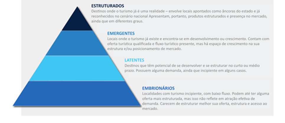 Buscando um olhar mais amplo e integrado que contemplasse o desempenho em relação à oferta e demanda, foi estruturada uma matriz de cruzamento que observou o grau de desenvolvimento do turismo, agrupando os destinos em quatro categorias: